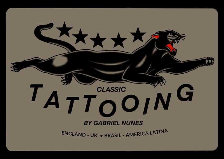 From the beginning of his journey, Gabriel was drawn to traditional tattoos and the strong visual impact of large traditional Japanese body suits. Today, his work is a mix of modern and classic tattooing, influenced by Europe, North America, Asia, and Latin America. His attention to detail, respect for the history of tattooing, and passion for the craft can be seen in every piece he creates and in his hand-painted flash sheets.